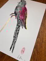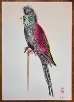 “Buzz the Punk Budgie” The next of my new Lino prints.