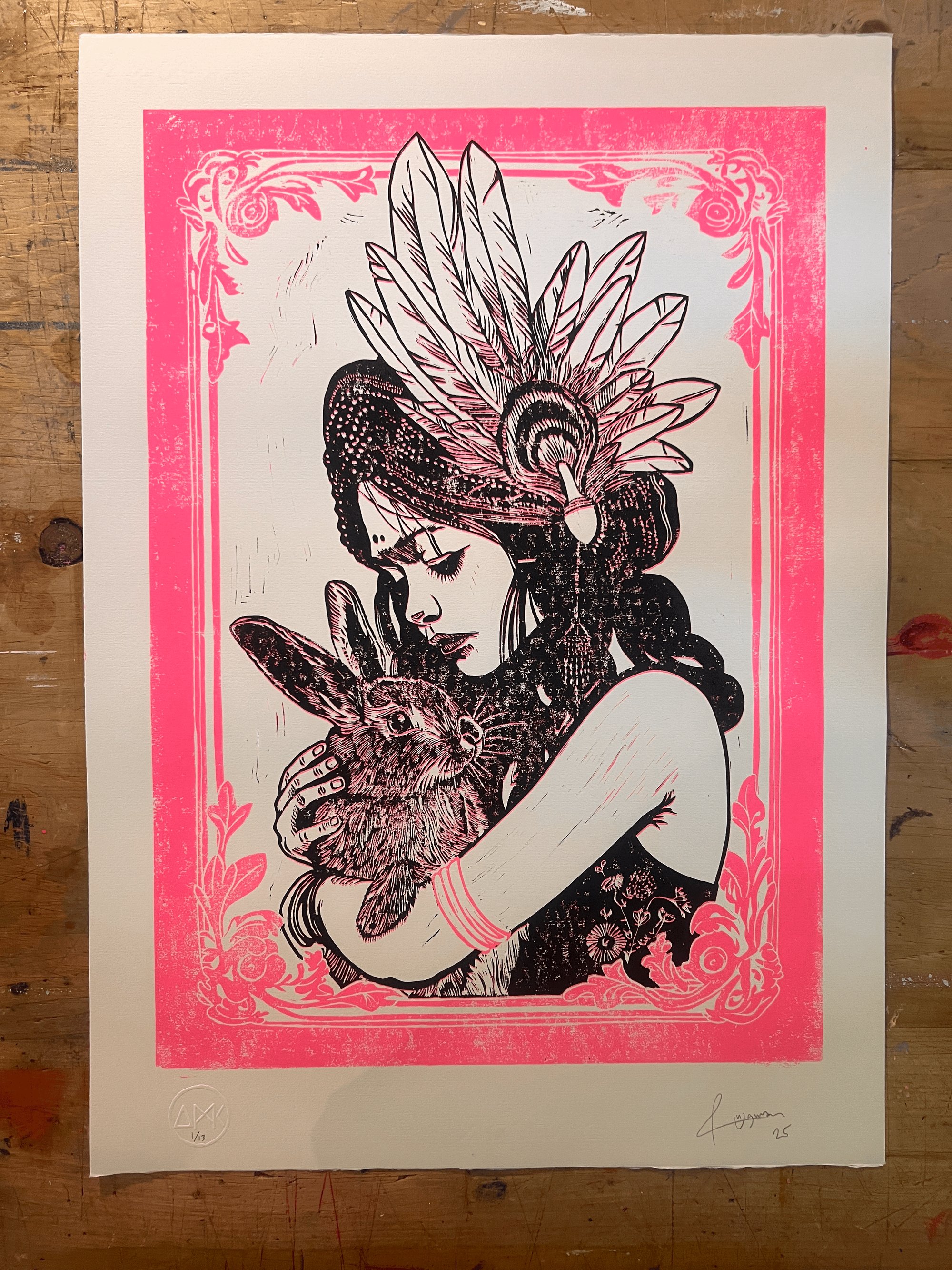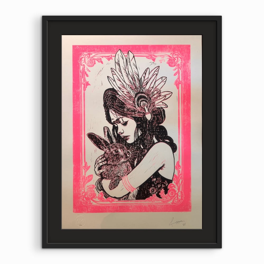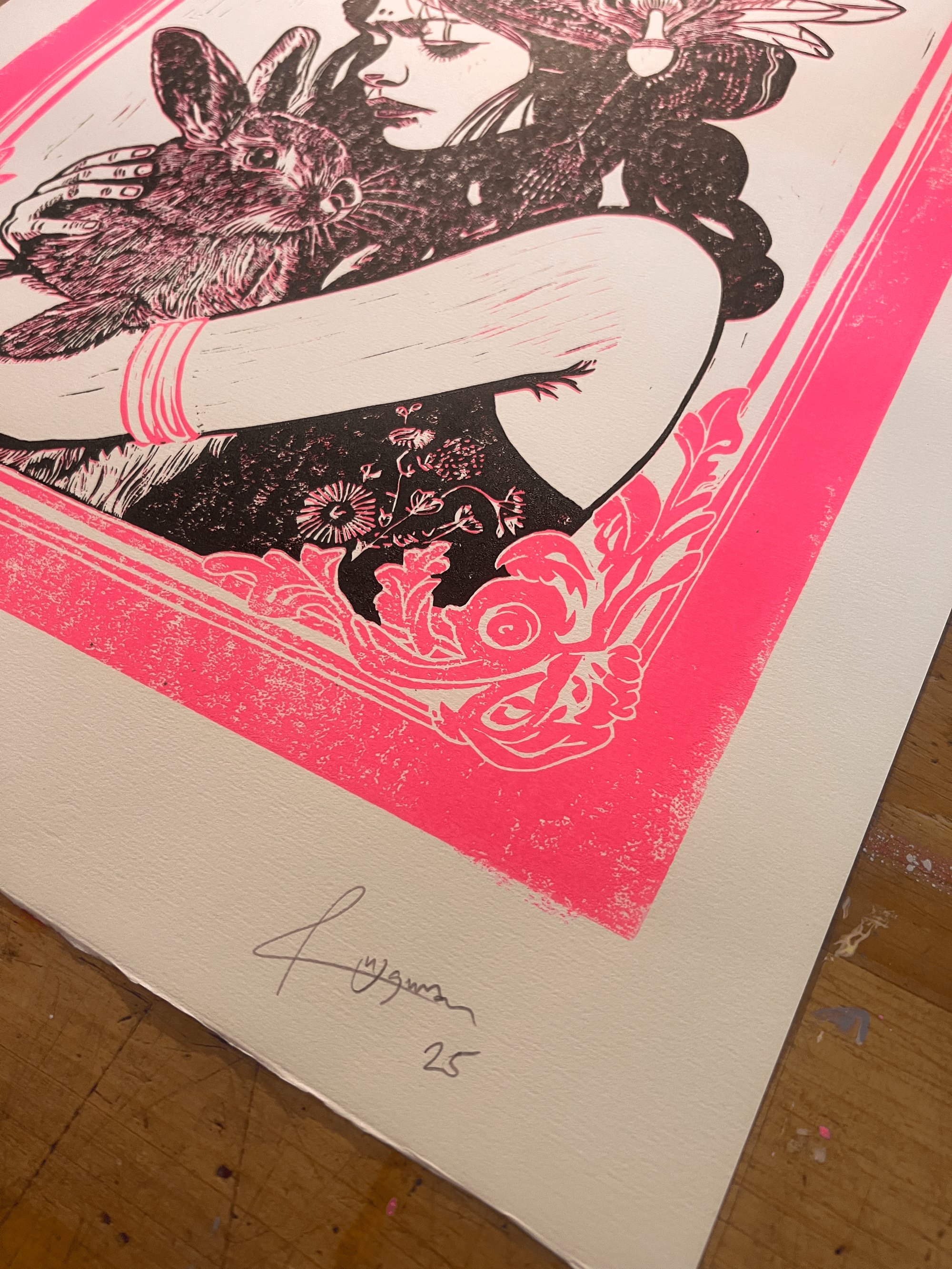 My brand new Lino print “Daughter 3” is now live on my site. Only 13 made, hand printed 2 colour reductive Lino.