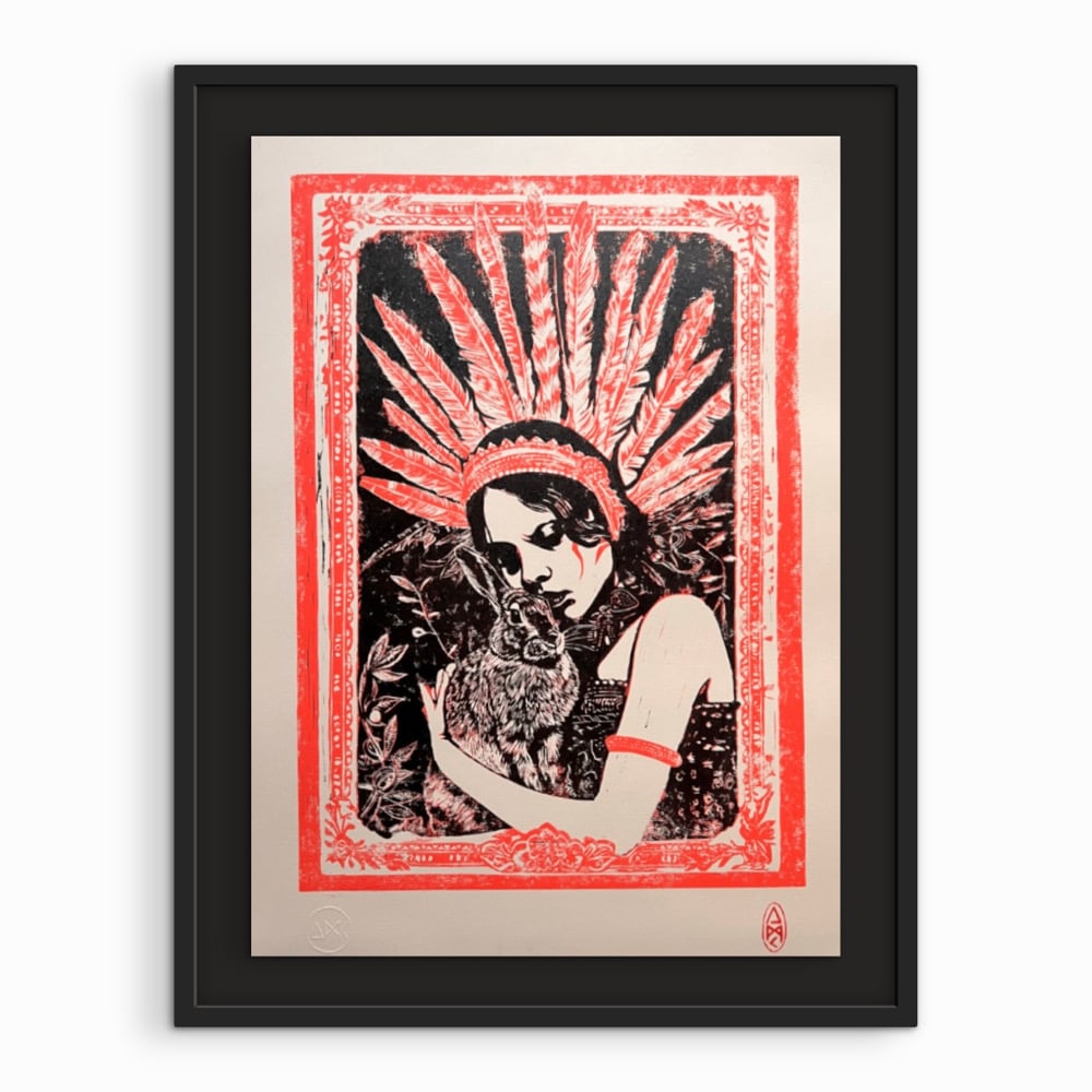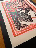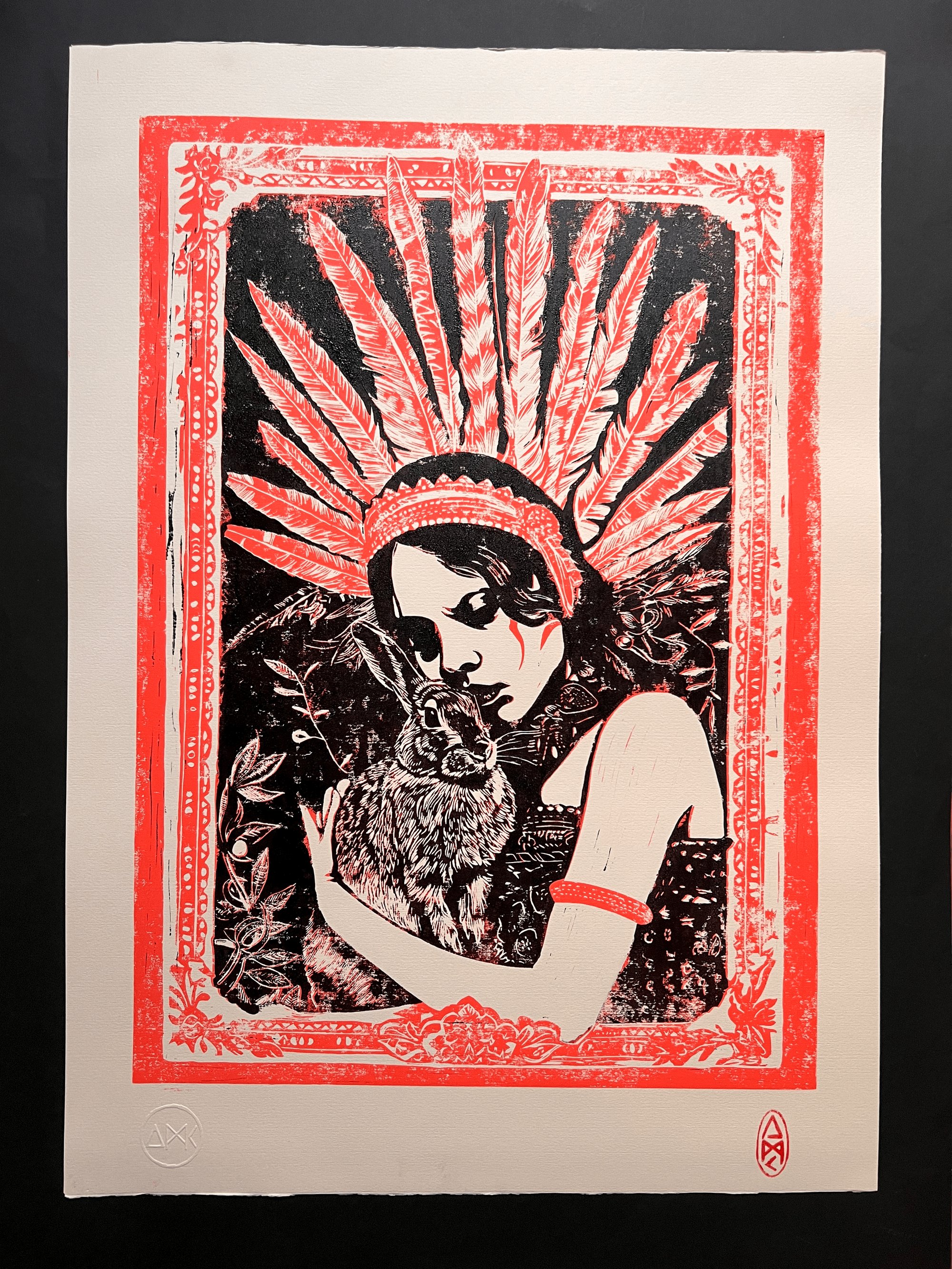 Hand printed 2 colour reductive Lino print on 285gsm Antique ivory Fabriano
