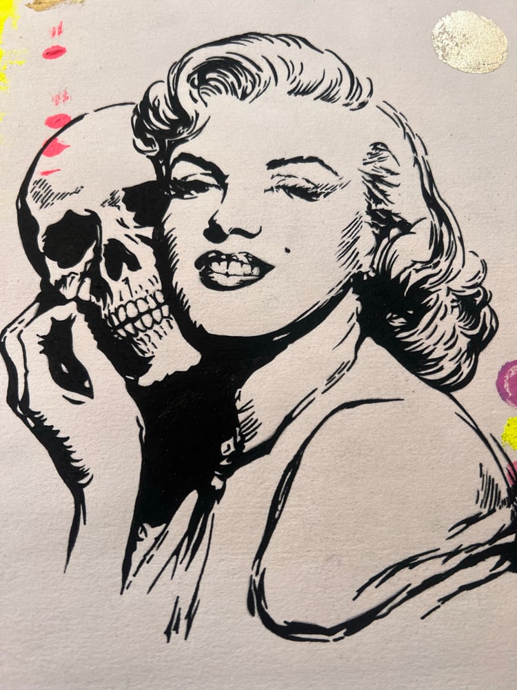 Acrylic, spray paint, pencil and gold leaf on 280gsm antique water-colour paper.