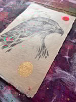 Pencil, acrylic and gold leaf on found antique Japanese cotton rag