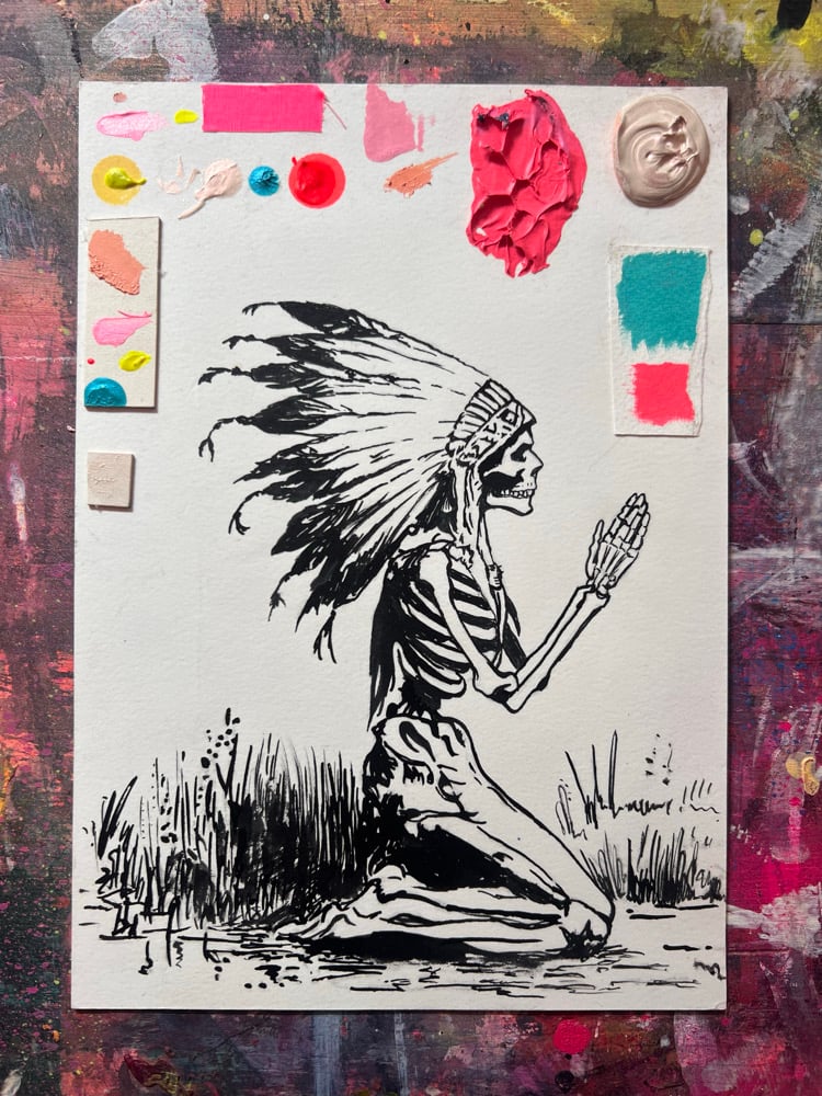 Acrylic and ink on 280gsm antique water-colour paper.