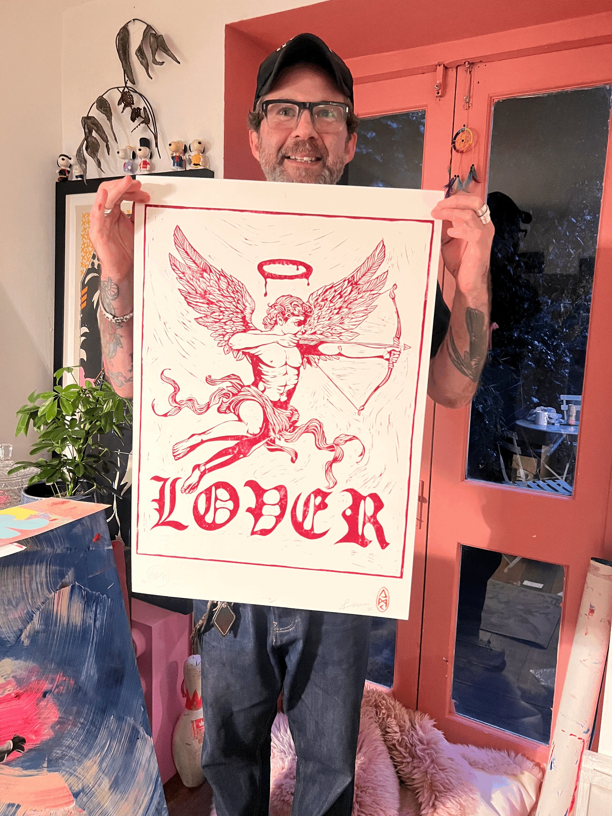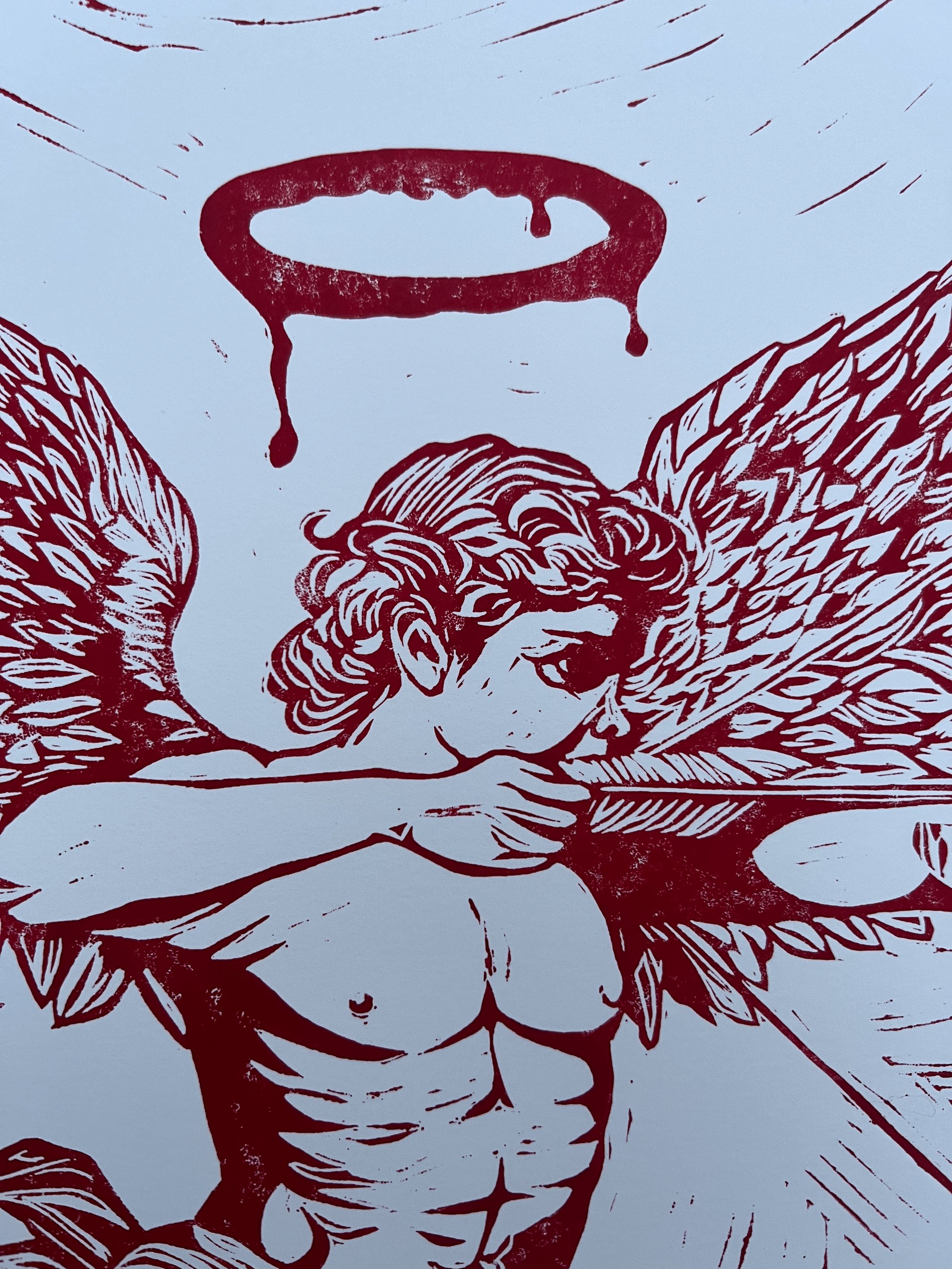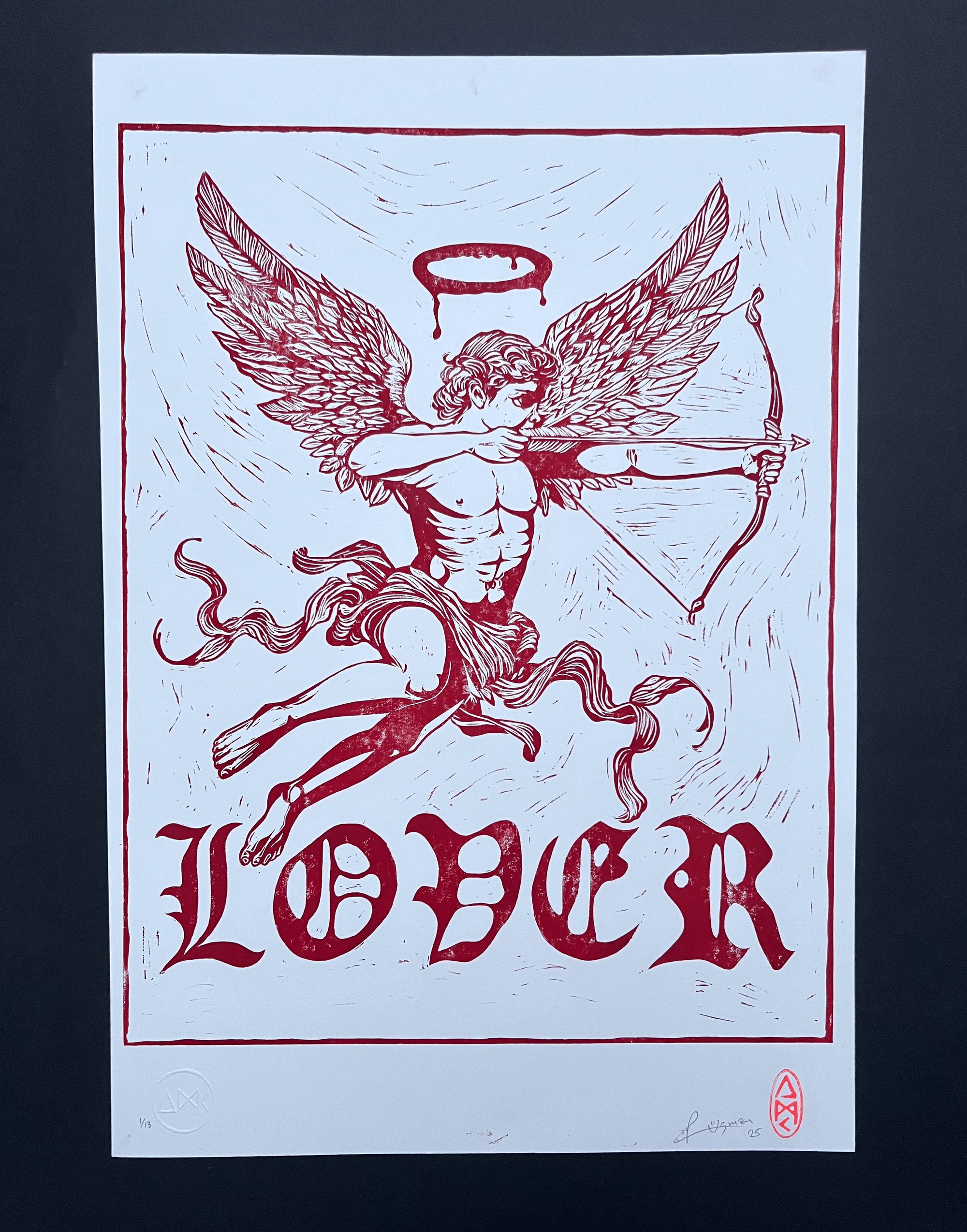 The very first Lino print to be released on my site. I’ve spent the last several months practising and honing my skills with the cutting tools. And I am so happy with this beauty. Lover is a hand cut single colour Lino print of the famous lover Cupid.