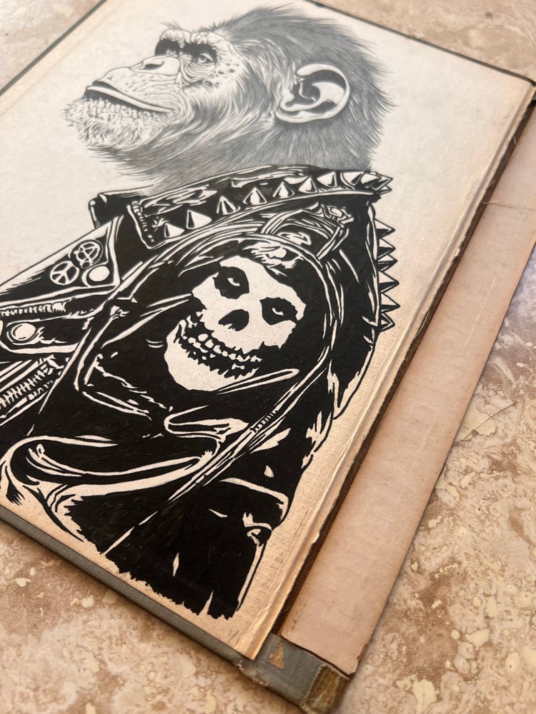 Acrylic and ink on found vintage book cover.
