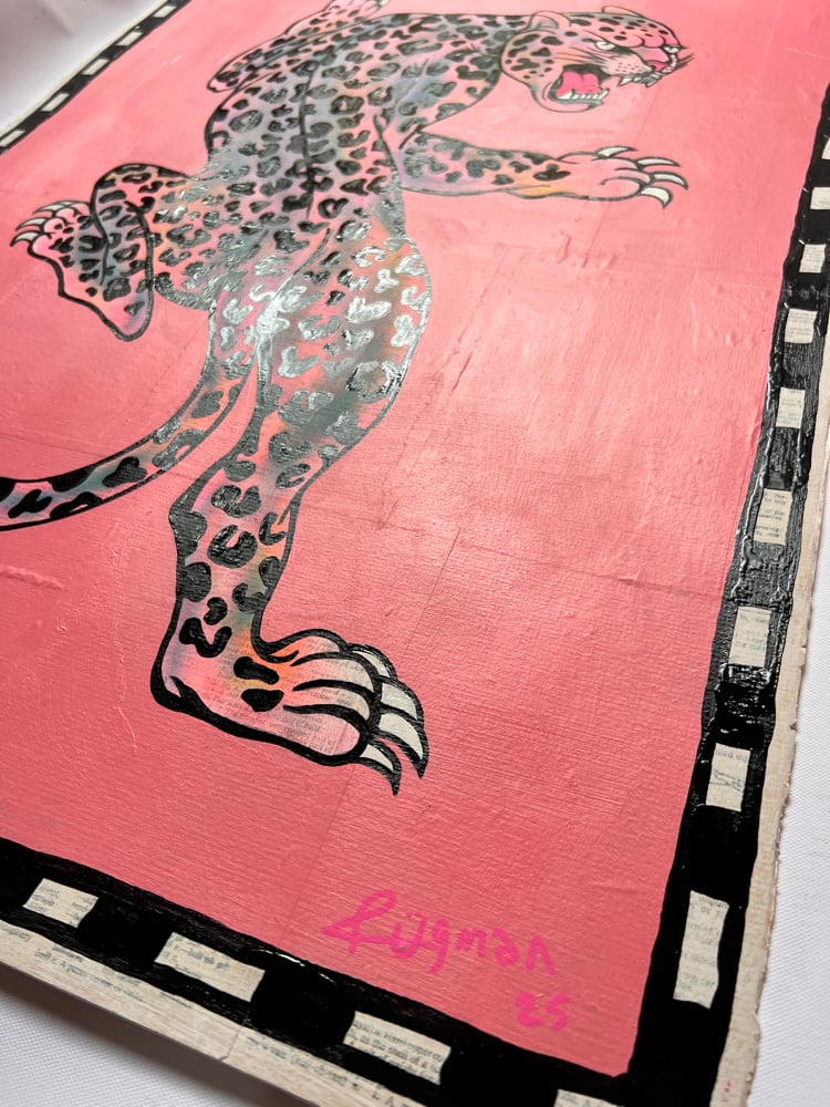 Acrylic, One Shot gloss and ink on 450gsm water-colour paper with vintage comic pages.