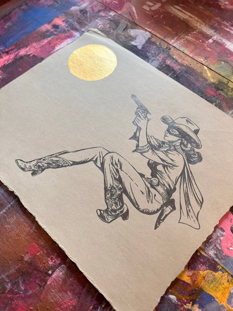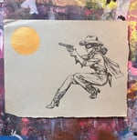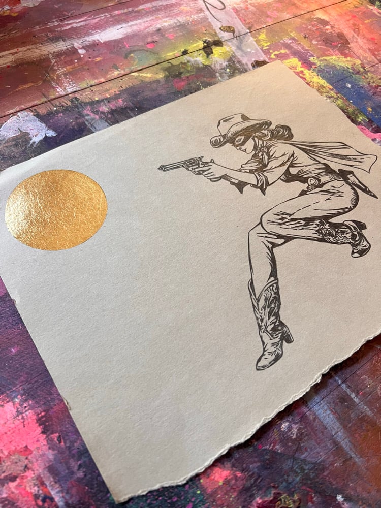 Pencil and gold leaf on thick found antique paper