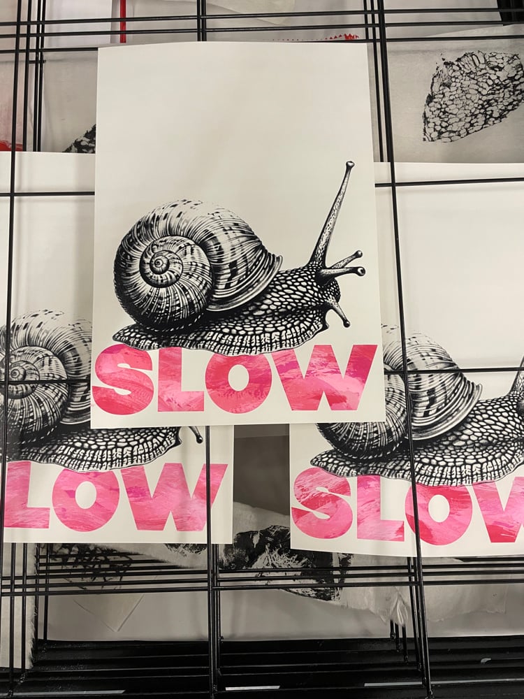 2 colour screen print complemented with a bright mono print on the word, to make each print unique.