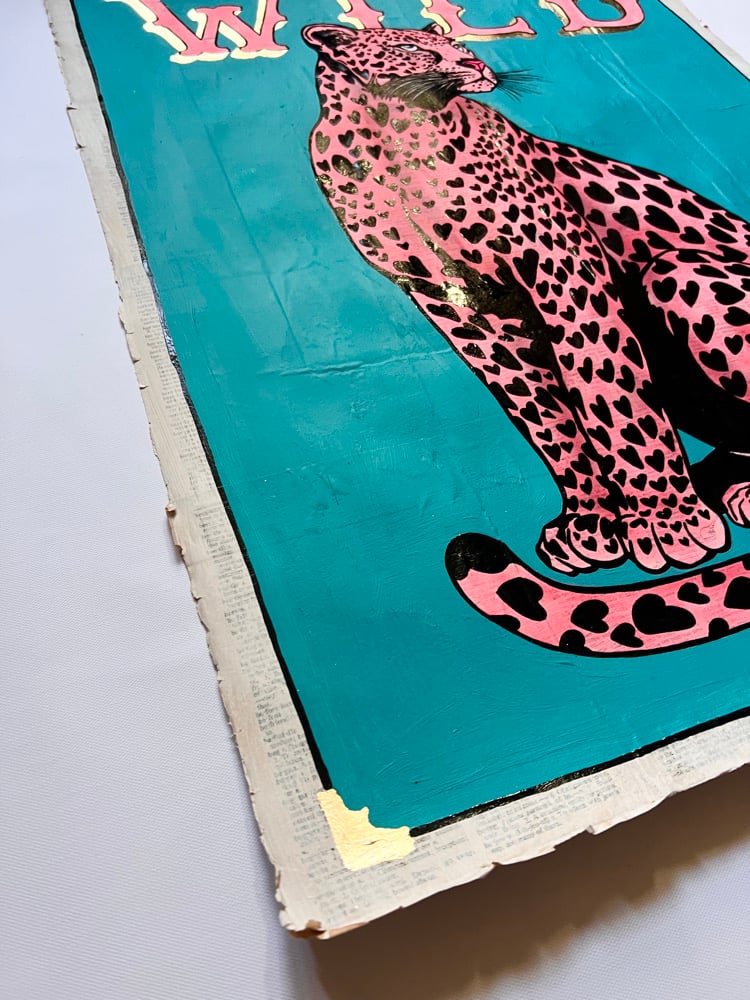 Acrylic, One Shot gloss, ink and 24 carrot gold on 450gsm water-colour paper with vintage book pages.